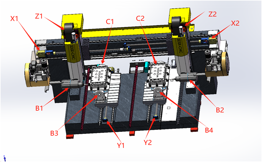 數(shù)控系統(tǒng)(雙頭雙通道);(品牌廠家待確認(rèn)) X1X2軸(型號待確認(rèn))伺服電機(jī); Y1Y2軸(型號待確認(rèn))伺服電機(jī); Z1Z2軸(型號待確認(rèn))伺服電機(jī)、帶抱閘; B1B2軸(型號待確認(rèn))伺服電機(jī)、帶抱閘; B3B4軸(型號待確認(rèn))伺服電機(jī)、帶抱閘; C1C2軸(型號待確認(rèn))伺服電機(jī)、帶抱閘; 2-主軸電機(jī)15-18000; |