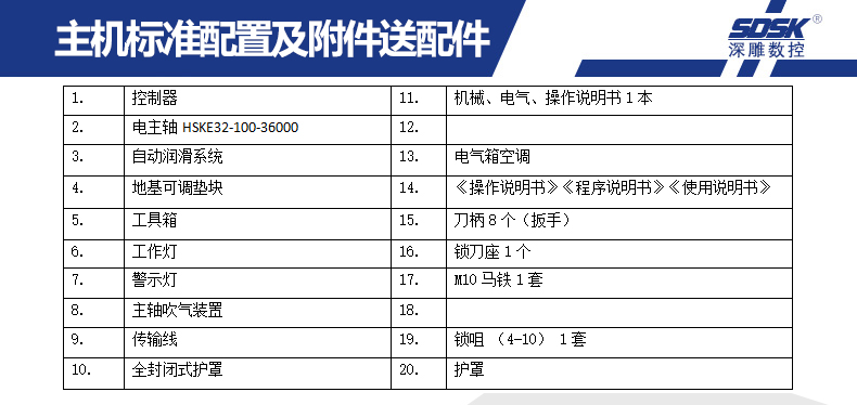 1. The SDSK250-4Z-HSKE32 model is a four head precision carving machine specially designed for customers; Equipped with dual row straight 8-position tool magazine; The movement mode is to move the Y-axis workbench forward and backward, the X-axis to move left and right, and the Z-axis to move up and down< Br/>