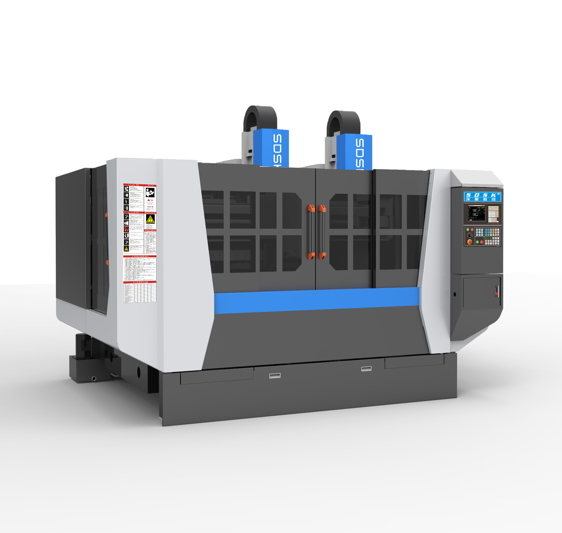 &Nbsp& Nbsp; The SDSK 2Z model is a 2-axis drilling and tapping machine with a tool magazine specially designed for customers; Equipped with a straight blade magazine; There are sliding doors on both the front, back, left, and right sides; The motion mode is to move the Y-axis worktable forward and backward, the X-axis spindle moves left and right, and the 2Z-axis spindle can move up and down simultaneously, drilling and tapping teeth simultaneously, or moving up and down separately. The two spindles clamp the same tool and process it simultaneously, which can greatly improve production efficiency; The body adopts top-notch Jinan granite (marble) structure, which never deforms; Taiwan's complete new generation system/servo motor/spindle drive; The 4-axis adopts imported Taiwan Shangyin/PMI/TBI precision linear guide, precision ball screw, precision coupling, power distribution cabinet thermostatic system, advanced spindle refrigeration system, automatic lubrication system, coolant circulating water spray and spray system, and air filtering device, which ensure higher processing accuracy, speed and stability& Nbsp; Especially suitable for precision 3D carving, milling, precision carving, cutting, drilling, tapping and other processing of various copper, aluminum, acrylic, plastic and other parts< Br/>