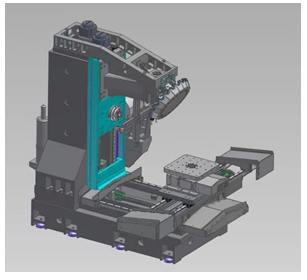 2、Y軸和V軸,在同側(cè)同方向,共用滾柱線軌,保證了臥式轉(zhuǎn)臺(tái)在加工過程中,始終處于同側(cè),同面加工,保證機(jī)加精度。
