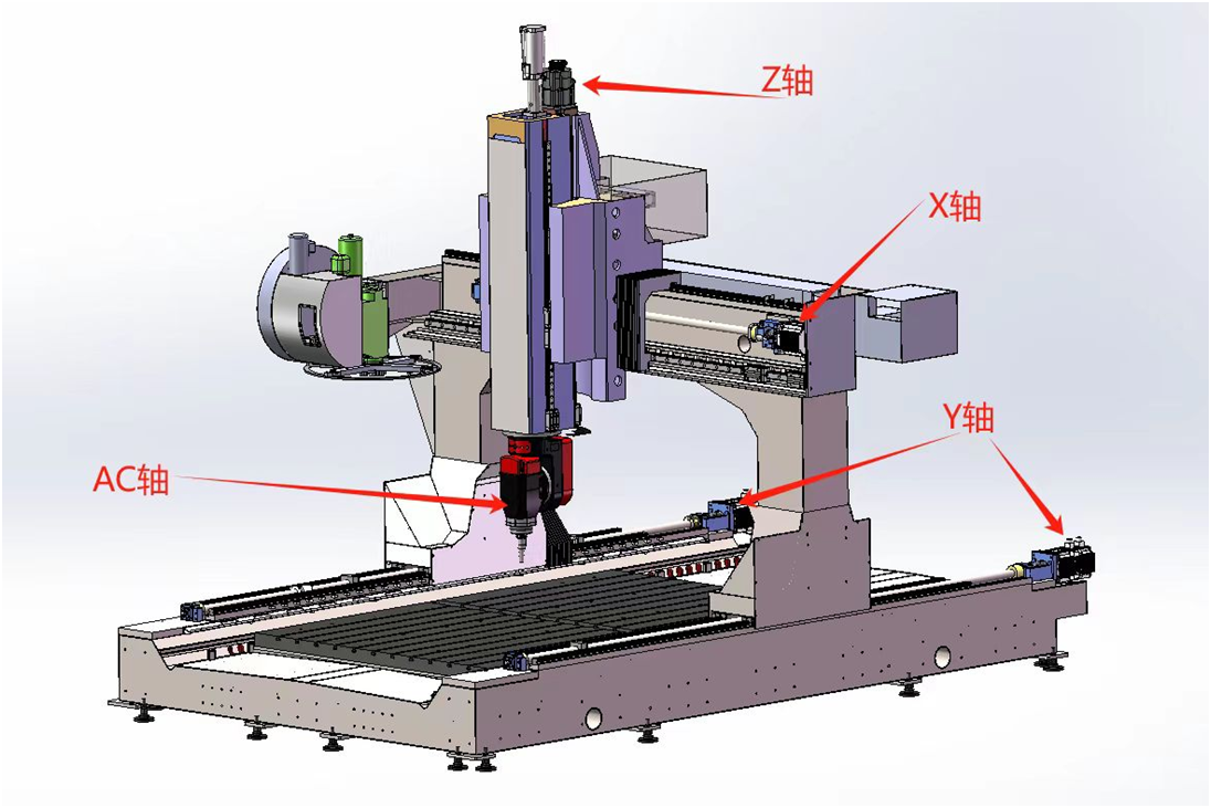 - 運動方式為Y軸龍門前后運動,X軸機(jī)頭左右運動,Z軸主軸上下運動,A軸可±110·旋轉(zhuǎn)、C軸可±360·旋轉(zhuǎn)。