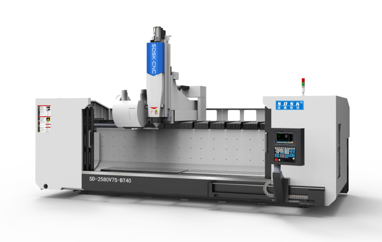 1SD2580V7S-BT40機(jī)型系列是專門為客戶量身定做的2.5型材加工中心;Y機(jī)頭前后運動,X軸機(jī)頭左右運Z軸主軸上下運